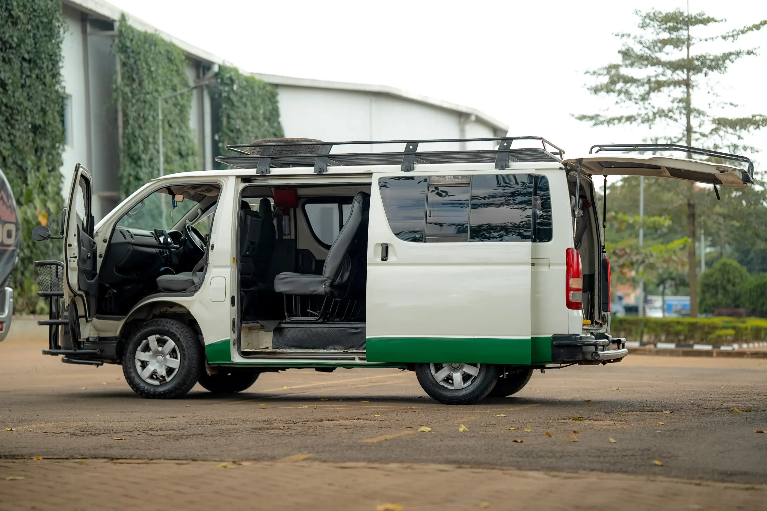 The Toyota Super Custom van is perfect for group travel in Uganda, providing ample seating, comfort, and reliability. Its spacious interior and durability make it ideal for long-distance journeys, whether for business or leisure across various terrains.