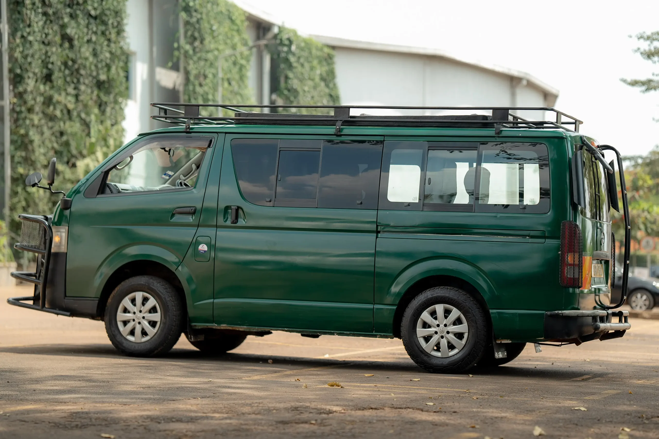 The Toyota Hiace Drone van is ideal for hire in Uganda, providing durability, spacious seating, and reliable performance. Its fuel efficiency and capacity for long distances make it perfect for group travel, tours, or business trips across varied terrains.